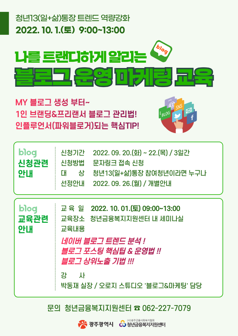 - 교육명 : 나를 트랜디하게 알리는 ‘블로그 마케팅 교육’